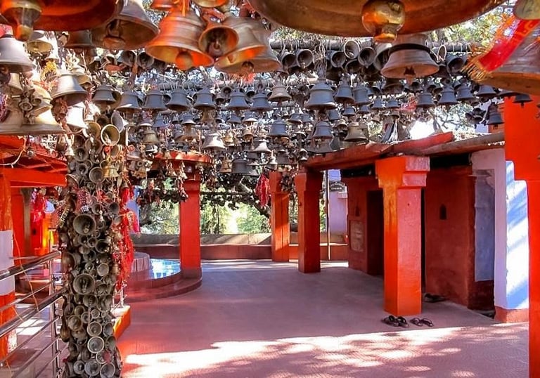 A revered temple dedicated to Golu Devta, the deity of justice, offering panoramic views of the surrounding valleys and a unique tradition of offering bells.